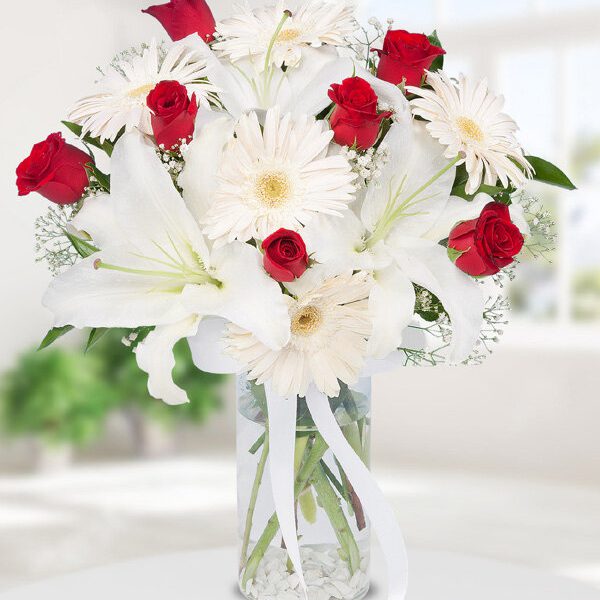 Beyaz Lilyum ve Kırmızı Gül Aranjman
